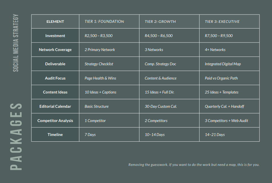 Stop guessing and start connecting. My Social Media Strategy packages are about finding the calm in the digital chaos by giving you a powerful, actionable plan. We look beyond the surface to define the content pillars and tactical steps that actually move the needle for your business. This is your guide to showing up online as your truest self, building a community that cares, and turning your digital presence into a sustainable asset. It’s time to know exactly what to post and why it matters.